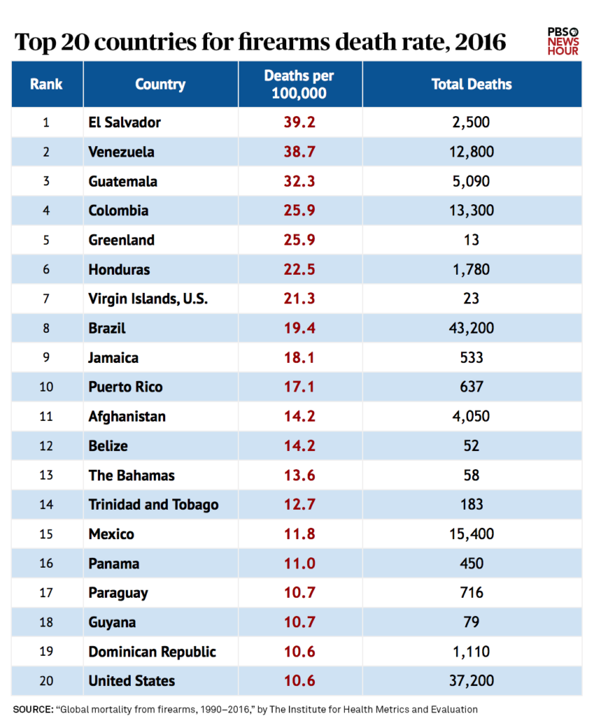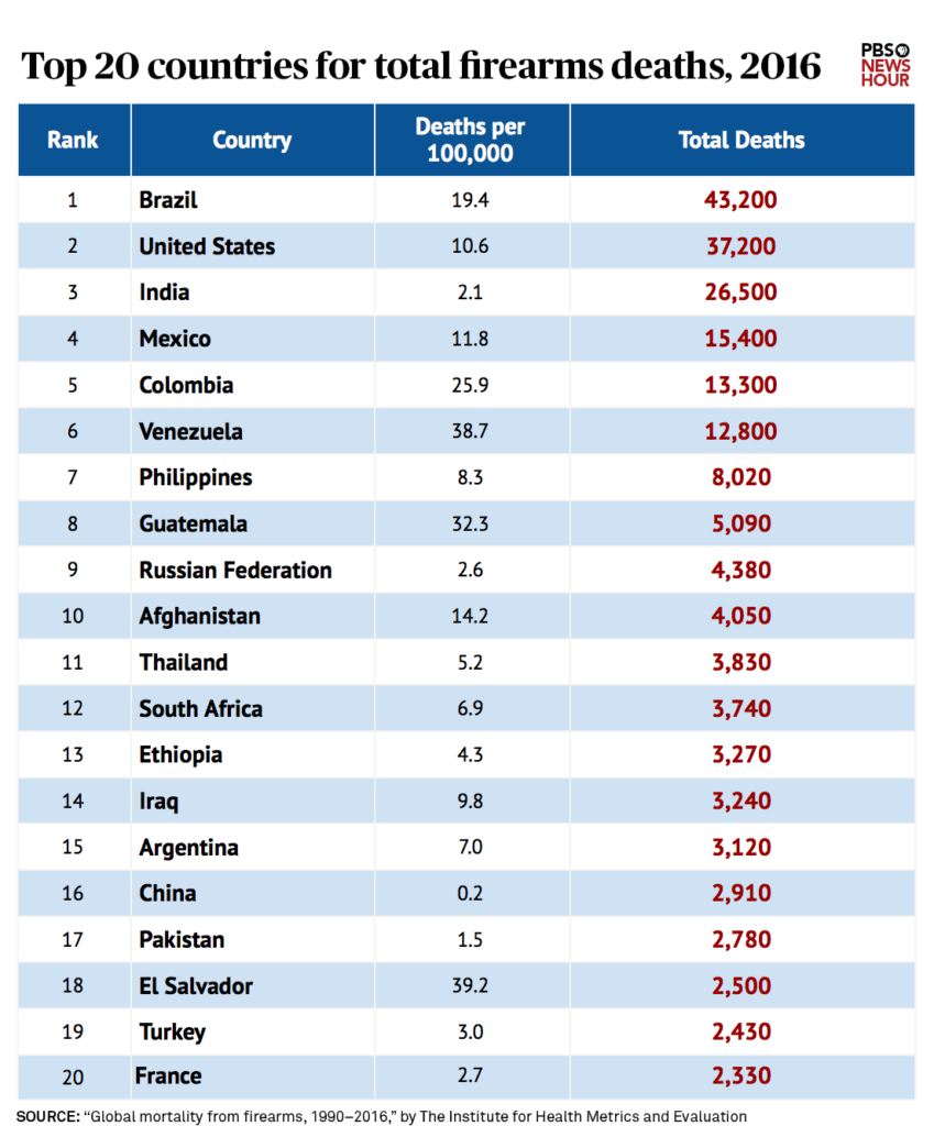 Theres a new global ranking of gun deaths. Heres where the U.S. stands